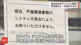 盛岡市役所でシステム障害 戸籍証明書など一時発行できず|NHK 岩手県のニュース 【NHK】盛岡市役所で26日正午ごろからシステムに障害が発生し、戸籍の証明書などが一時、発行できなくなりました。 市によりますとおよそ3時間後に解消…
